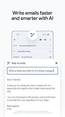 • الحصول على ميزات الذكاء الاصطناعي المتقدمة المدمجة واستخدام أحدث ميزات Gemini لتعزيز إنتاجيتك في Gmail.