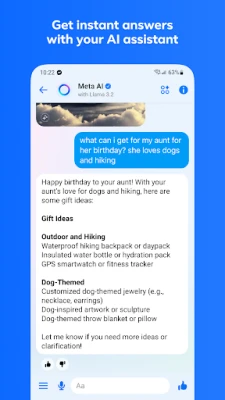 مساعدك الذكي Meta AI يُجيب على جميع استفساراتك، ويُقدم لك النصائح، ويُساعدك في واجباتك المدرسية، وغير ذلك الكثير.